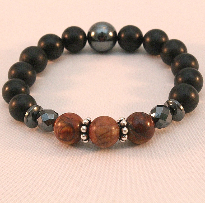 Red Creek Jasper provides for a very versatile design that goes well with most any earthy natural tones. Here it is combined with Black Onyx and Hematite to add a flair of elegance and sophistication.